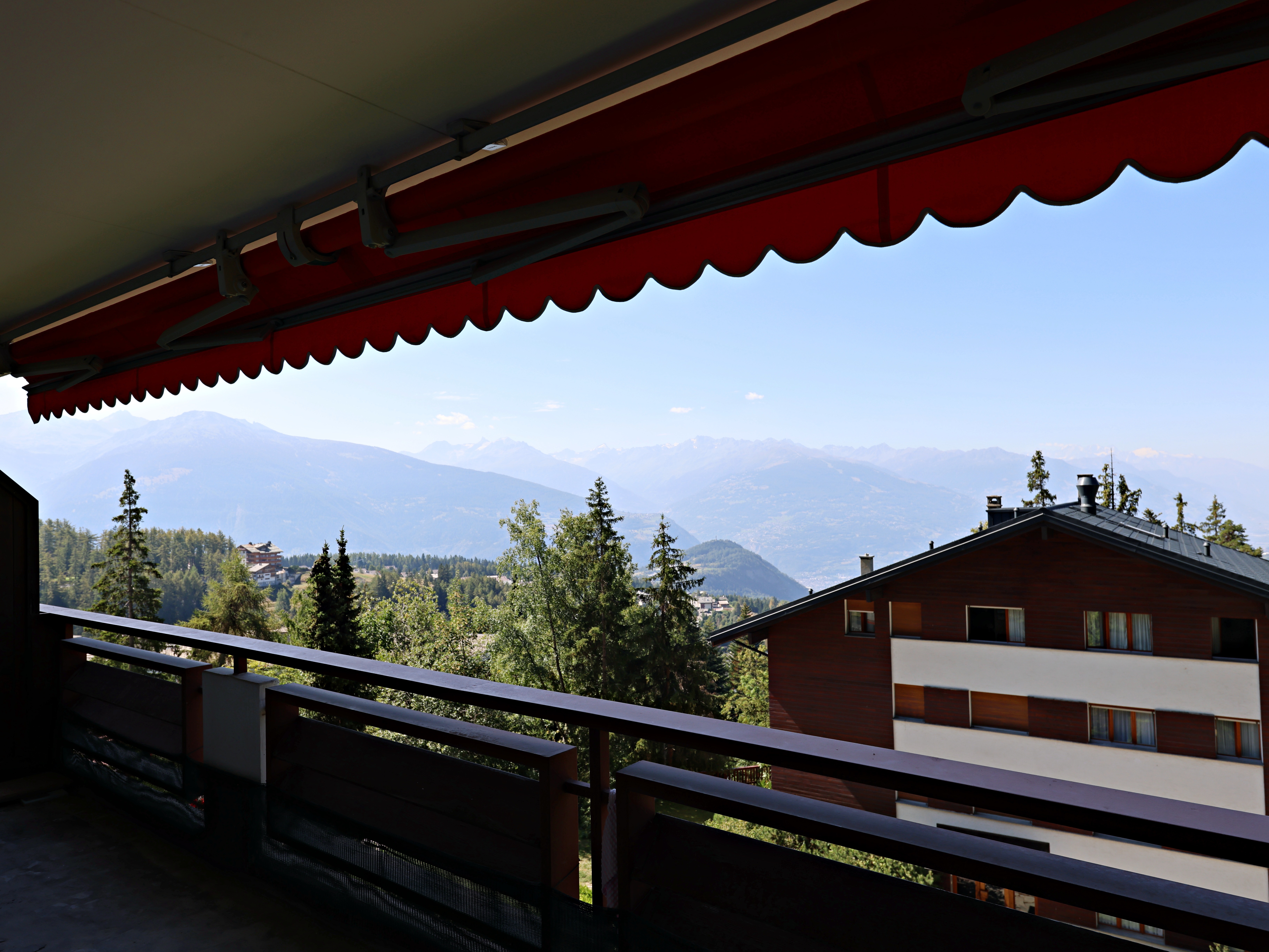 La résidence jouit d'un grand balcon terrasse d'environ 15m2, lieu privilégié pour jouir de l'air pure et des splendides panoramas qu'offre Crans Montana. Parfait pour savourer un moment de bien-être, dans la douceur d'une soirée d'été.