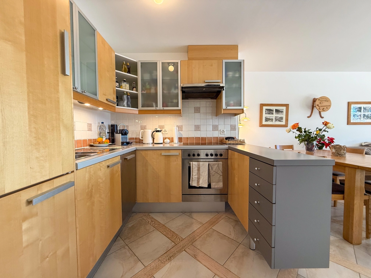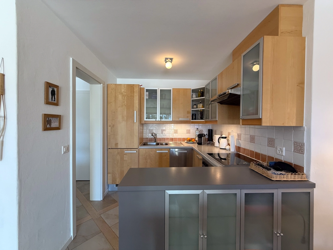 Cuisine : Entièrement rénovée et ouverte, elle est équipée de plaques vitrocéramiques, d'un grand réfrigérateur avec congélateur, d’un four, d’un micro-ondes et de nombreux rangements. Le sol est un mix de carrelage et parquet.