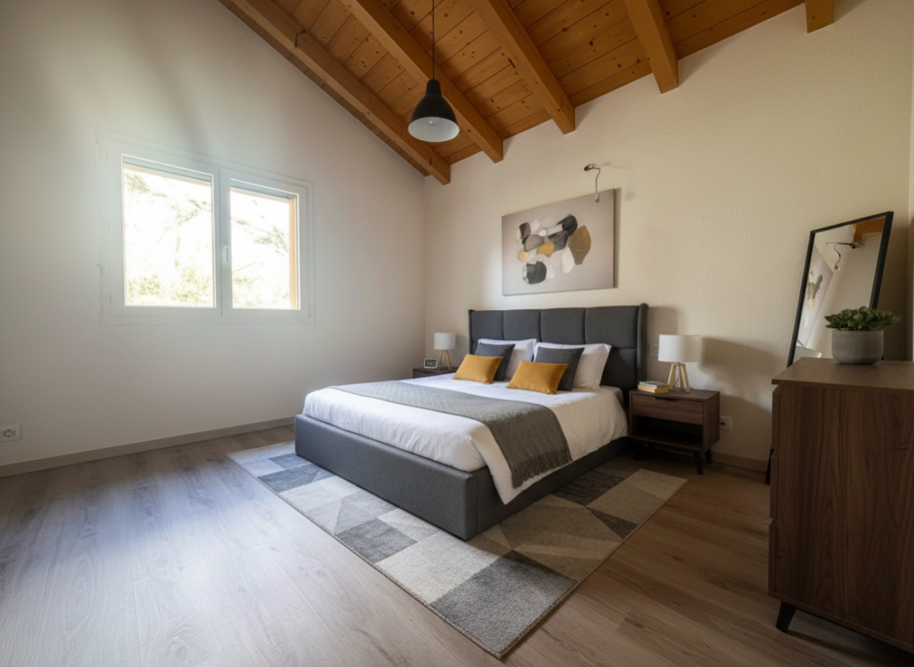 Il est composé de 4 chambres, d'une cuisine entièrement équipée,