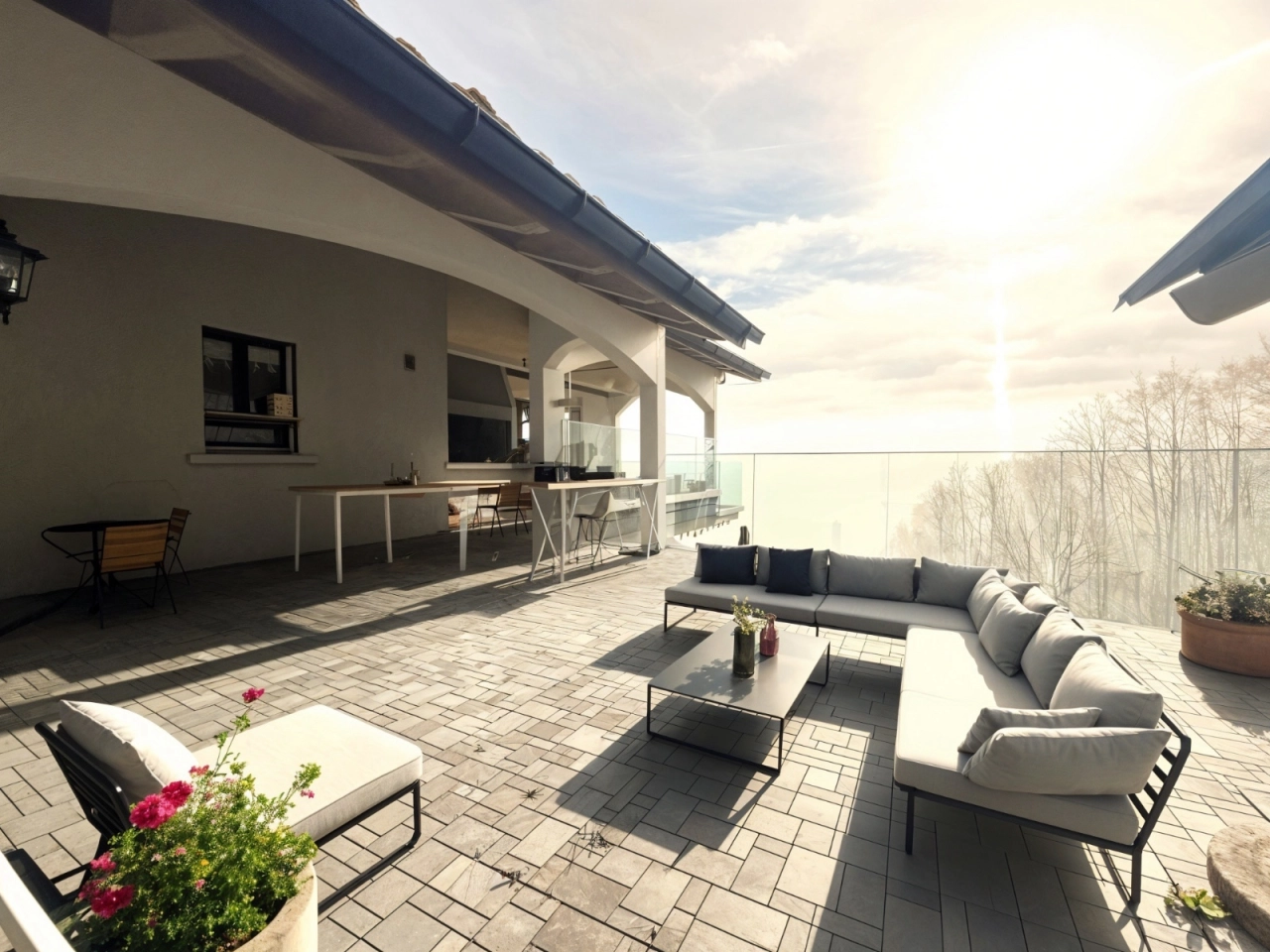 - Grandes baies vitrées offrant une luminosité globale sur