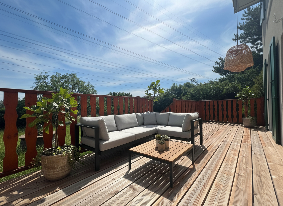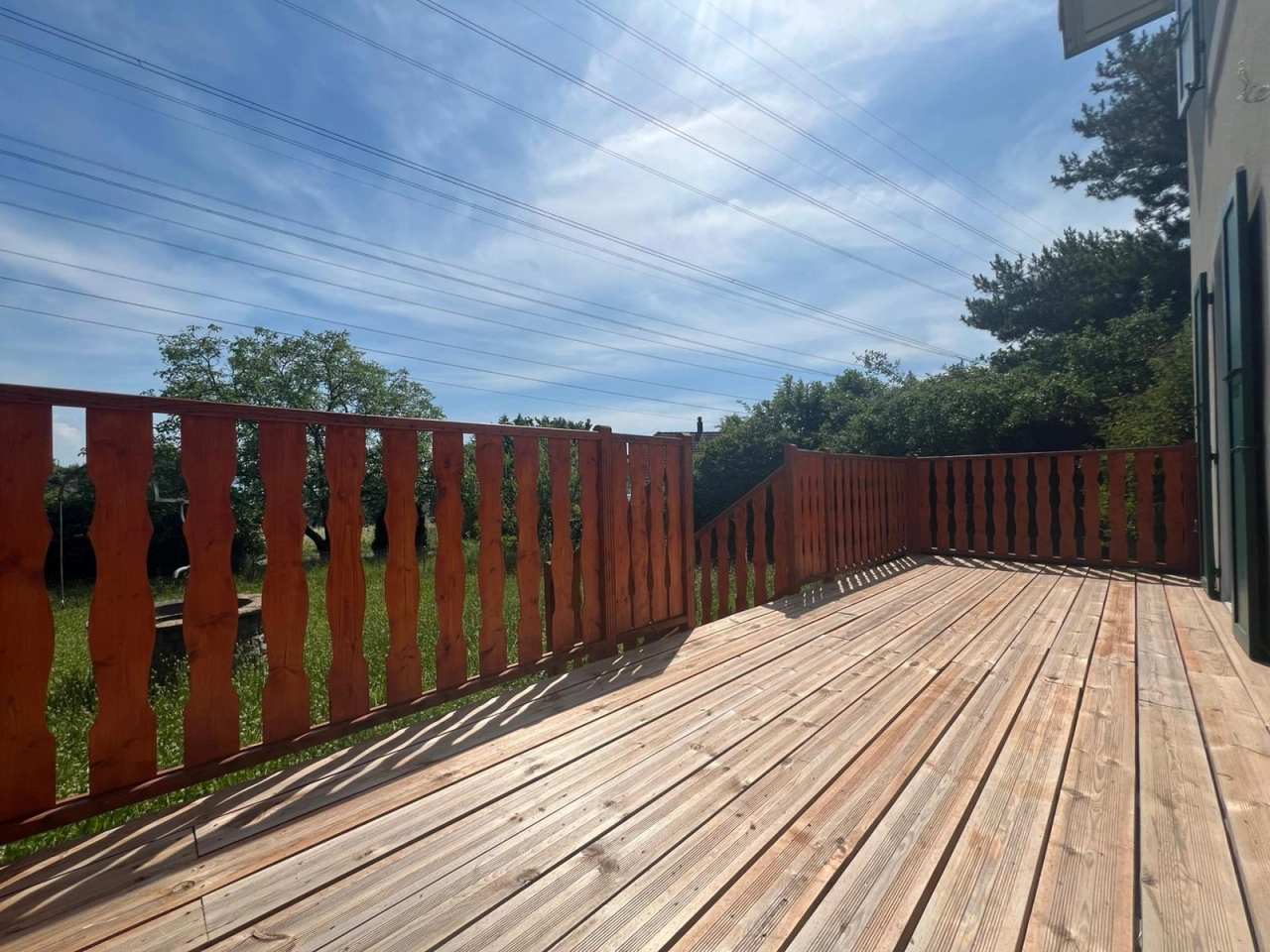 - Rez: salon, cuisine, WC visiteurs, terrasse et grand jardin de 790m2