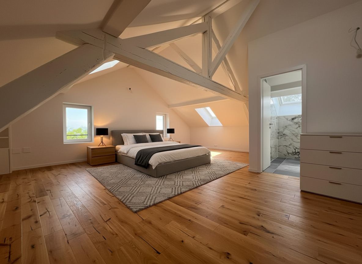 - 2ème étage : suite parentale avec salle de bain attenante (baignoire, lavabo, WC)