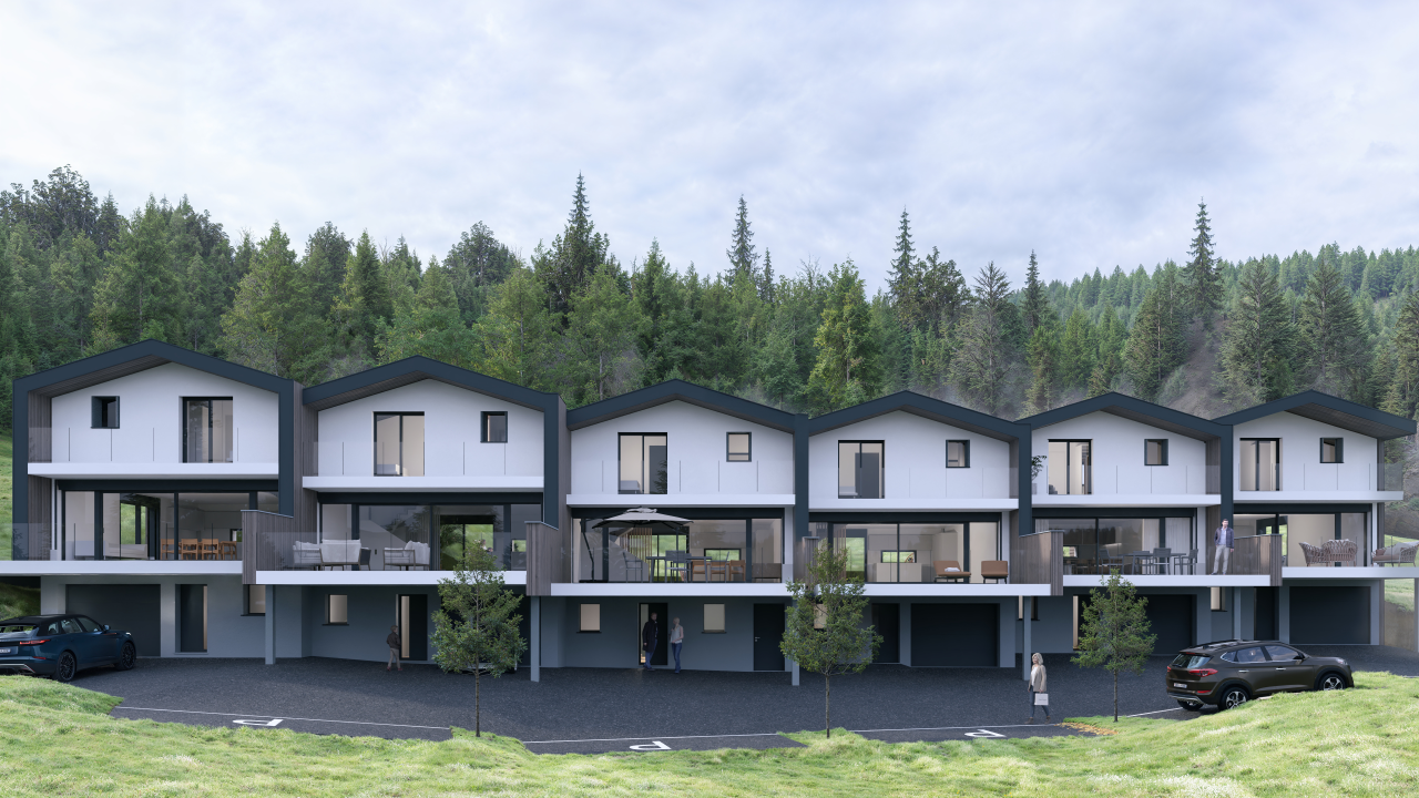 Villa 5 : 164m2 habitable brut, terrasse Nord de 28m2, terrasse Sud de 31m2, balcon de 8m2, jardin