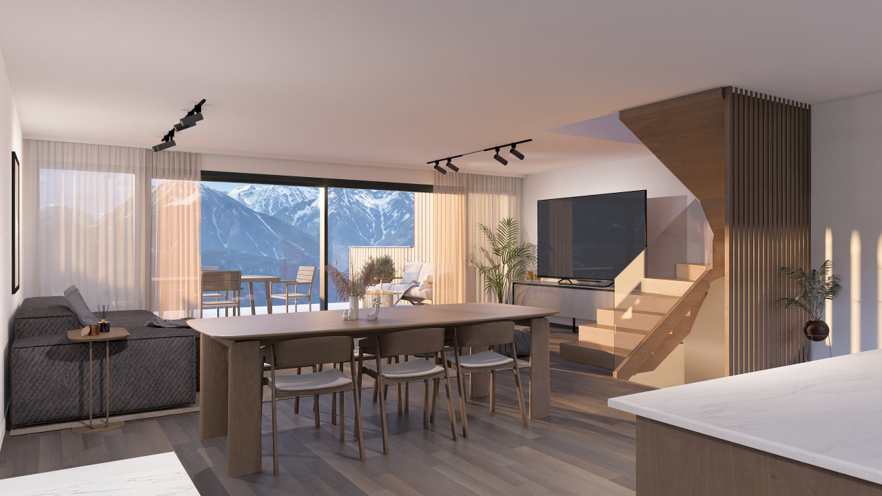 Villa 1 : 170m2 habitable brut, terrasse Nord de 38m2, terrasse Sud de 30m2, balcon de 7m2, jardin