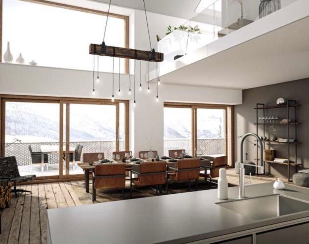 This exceptional duplex apartment is located on the 4th floor of a prestigious residence in the heart of Saas-Fee and offers 210 sqm of living space and high ceilings, being on the top floor of the building.