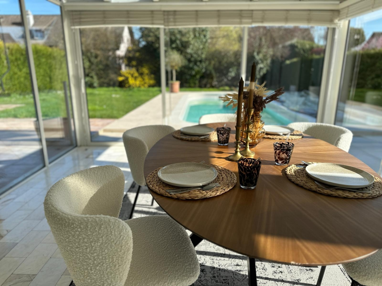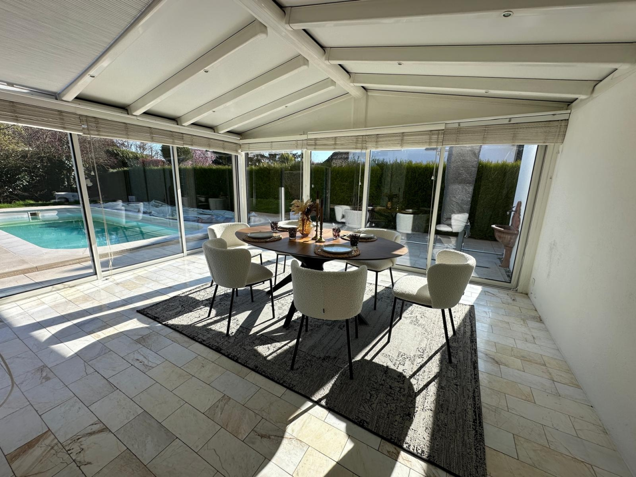 La propriété bénéficie d’un extérieur soigneusement pensé : un jardin accueillant avec piscine, parfait pour la détente et la convivialité.