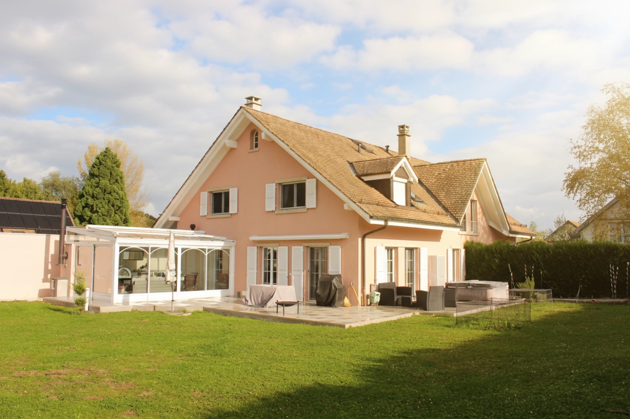 Coup de cœur pour cette magnifique et vaste villa jumelle lumineuse, idéalement située en plein centre du charmant village de Féchy, dans un quartier résidentiel paisible et convivial, à proximité immédiate des commodités et de l’école primaire.