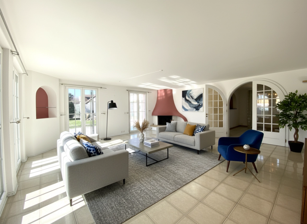 Grand séjour lumineux avec accès direct à la terrasse