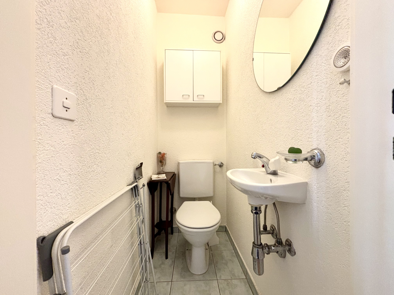 Une cave partagé avec la propriétaire et un local à vélo complètent ce bien.