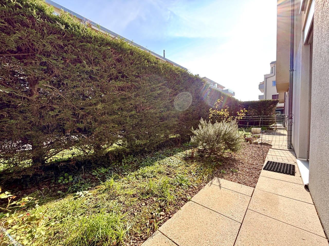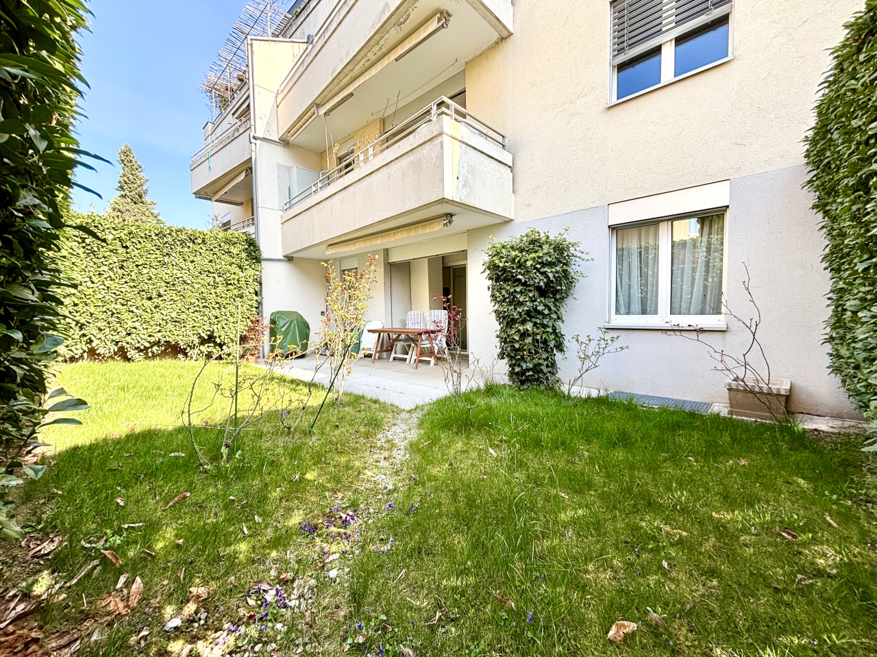 L'appartement traversante se trouve au rez-de-chaussé et bénéficie d'une belle terrasse et d'un petit jardin des deux côtés.