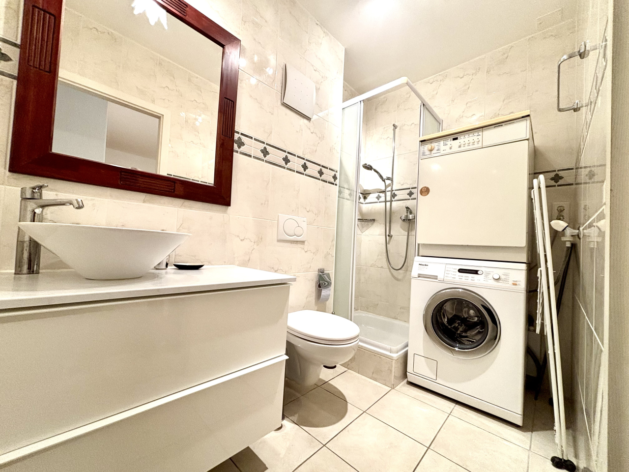 Il est composé d'un hall d'entrée, d'une pièce de séjour / salle à manger lumineuse, d'une cuisine entièrement équipée, de 2 chambres dont une avec sa salle de bain et d'une salle de douche avec machines à laver supplémentaire.