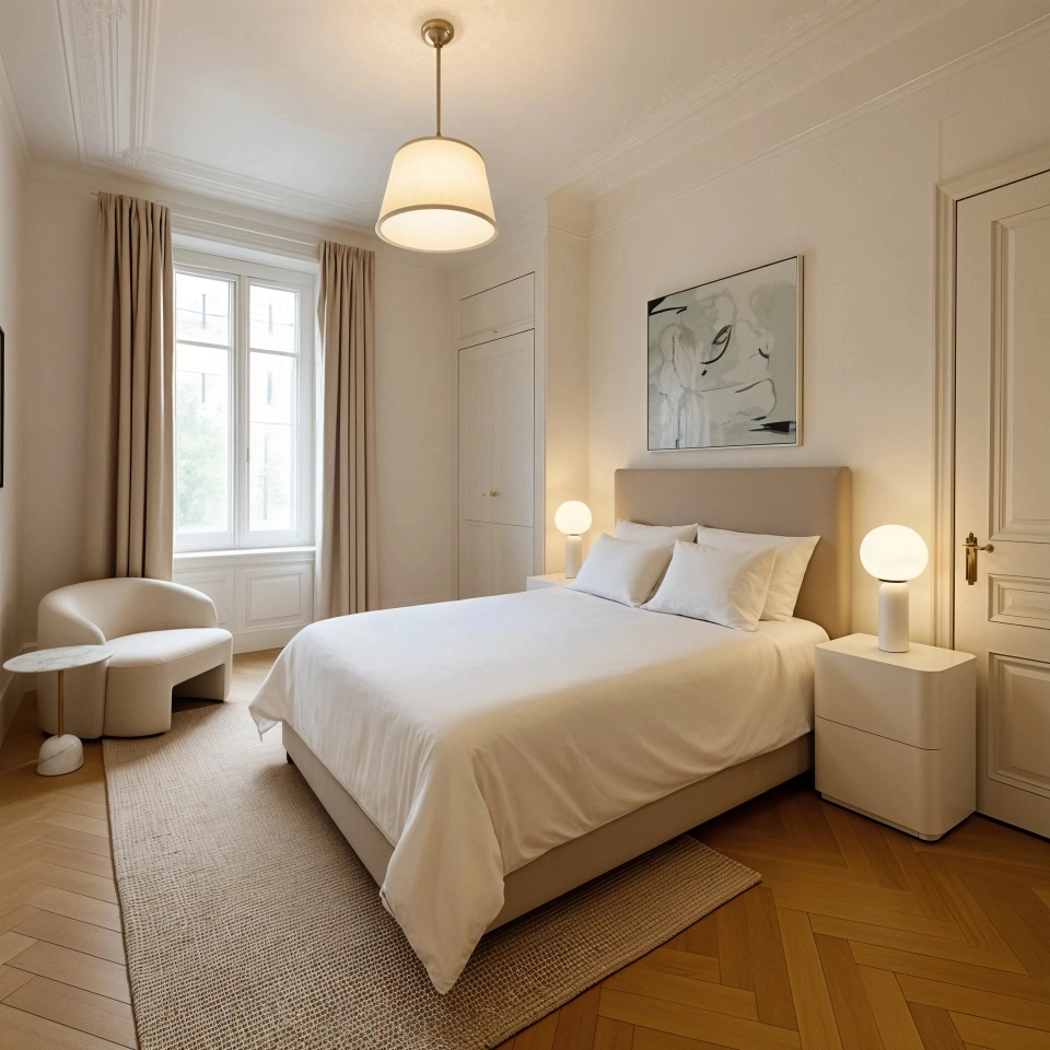 Magnifiquement appartement luxueux meublé, avec 3 grandes chambres et deux salles de bains (une en suite avec baignoire, l'autre avec douche à l'italienne), c'est un lieu de vie idéal pour un couple ou une famille.