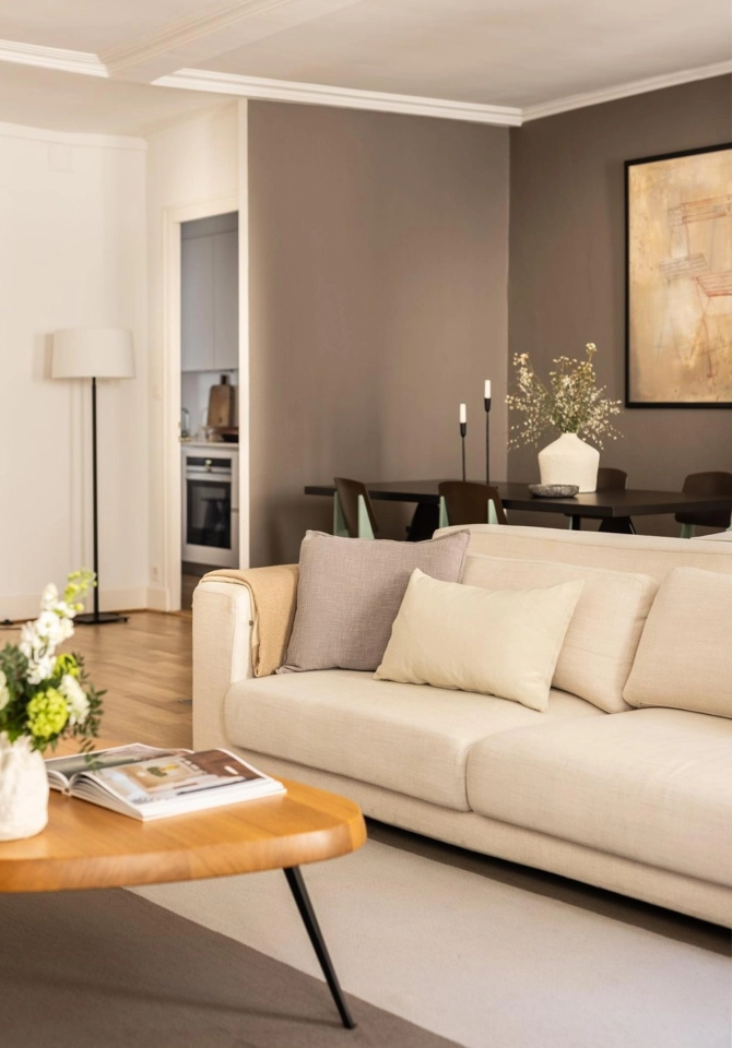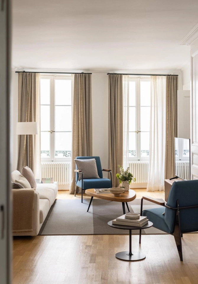 Magnificent Haussmanian style apartment with high ceilings and period fireplace. The building dates from the 18th century.