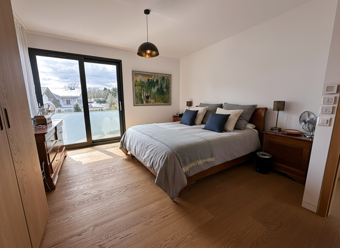L’espace nuit se compose de trois chambres, dont une somptueuse suite parentale avec grand dressing et salle de bains/douche attenante avec WC.