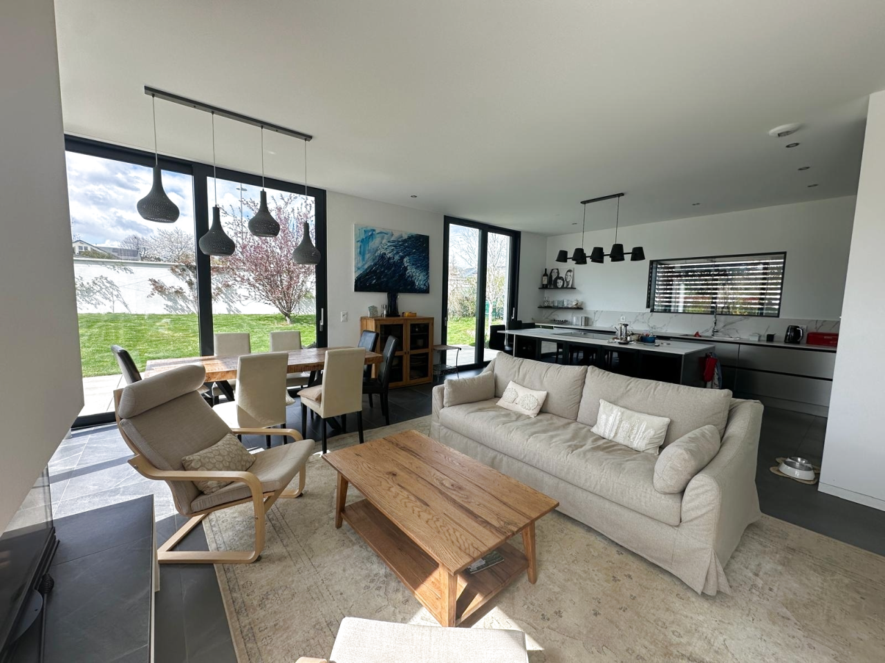 Implantée sur une parcelle arborée et entièrement clôturée de 1’100 m², cette propriété allie confort moderne, élégance et qualité de vie.