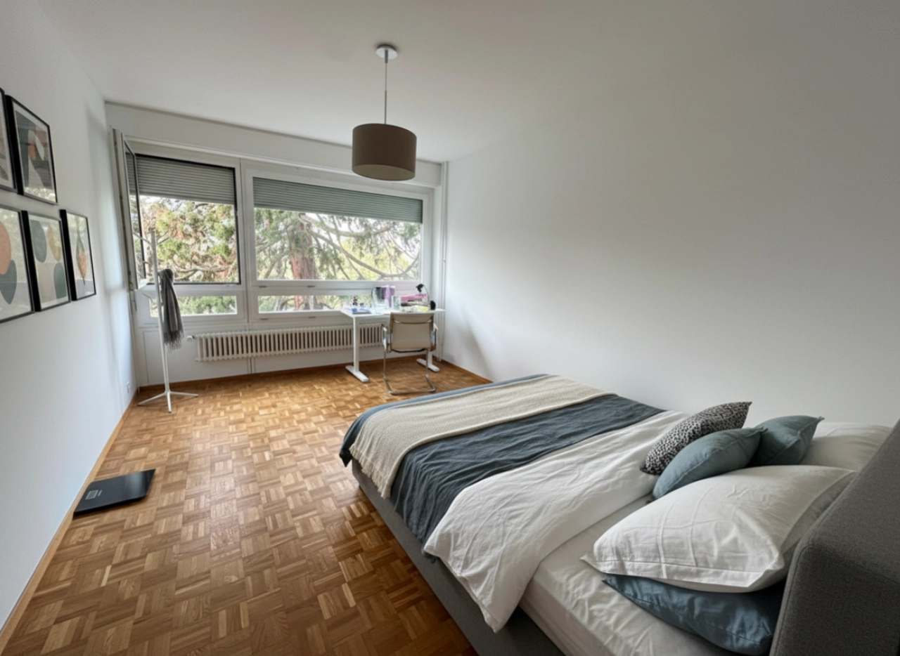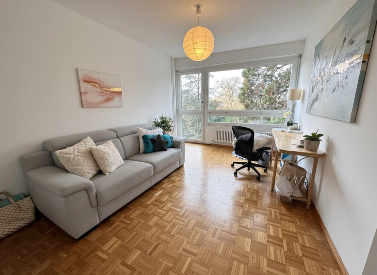 Magnifique appartement en sous-location meublé de 7,5 pièces d'une surface habitable de 183m2, situé à Chêne.-Bougeries, Chemin de la Montagne. Il est à louer pour une durée minimum de 6 mois.